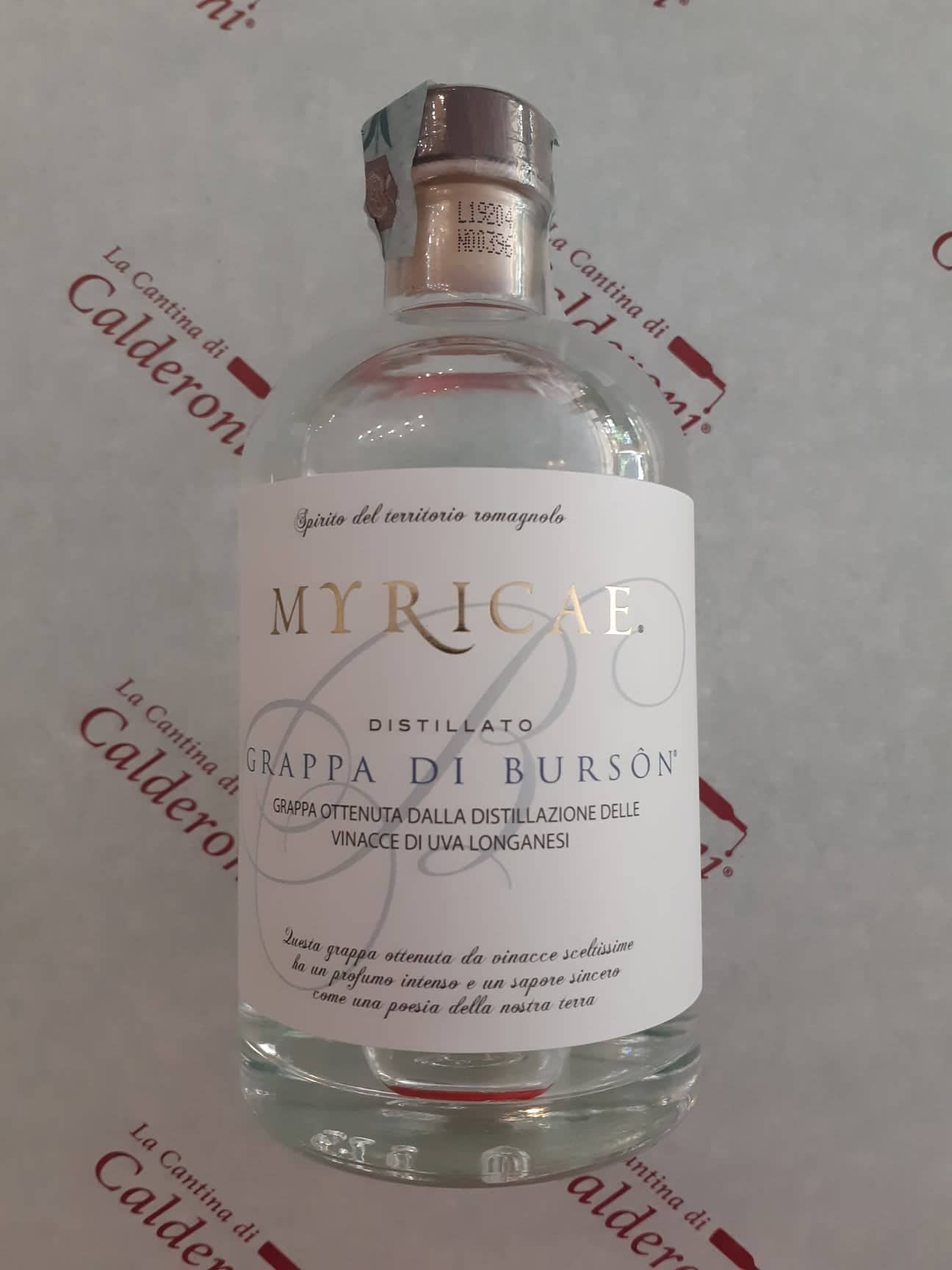 Grappa giovane di pura vinaccia di monovitigno di uva Longanesi (denominato anche Burson), distillata con metodo discontinuo in caldaiette di rame.